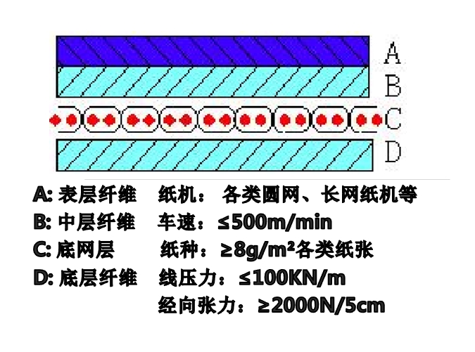 單層 BOM 毛毯的底網(wǎng)層是單層結(jié)構(gòu),具有濾水性好、縮率小、便于洗滌、毯痕輕、使用壽命長等特點,廣泛應(yīng)用于圓網(wǎng)、長網(wǎng)紙機等生產(chǎn)各類紙張